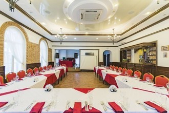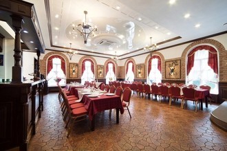 Для проведения небольших праздников в ресторане есть два зала вместимостью до 16 и до 25 человек. А для масштабных событий администратор ресторана может предложить вам банкетный зал в стиле средневекового замка вместимостью до 60 человек. В ресторане работает банкетный менеджер, который с удовольствием поможет вам составить меню и рассадить гостей.